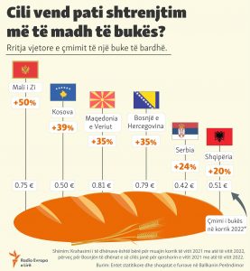 Kjo u bë e ditur në një infografikë të publikuar nga Radio Evropa e Lirë, të dhëna të cilat janë mbledhur nga entet statistikore dhe shoqatat e furrave në Ballkanin Perëndimor.