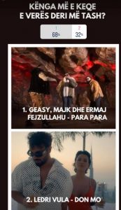 Plot 68 përqind e audiencës kanë vendosur se s’ka më keq se kënga e Geasy, Majk dhe Ermal Fejzullahut, nga një pjesmarr e konsiderueshme në votime.