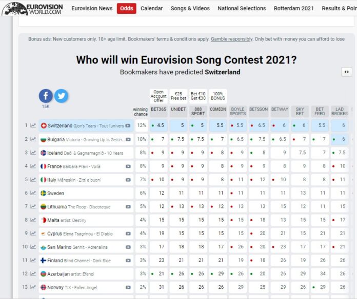Festivali evropian i këngës “Eurovision” ketë vit mund të ketë një fitues kosovar, kështu sipas basteve favorit është kënga e Gjon Muharremaj “Tout l’Univers”, i cili përfaqëson shtetin e Zvicrës.