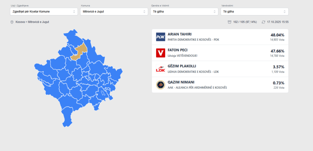 KQZ verifikon mbi 97% të votave në Mitrovicë – Tahiri mbi 100 vota para Pecit