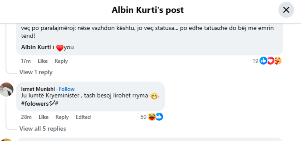 Kurti shkruan për arrestimet për spiunazh, Ismet Munishi i komenton me ironi: Tash besoj lirohet rryma