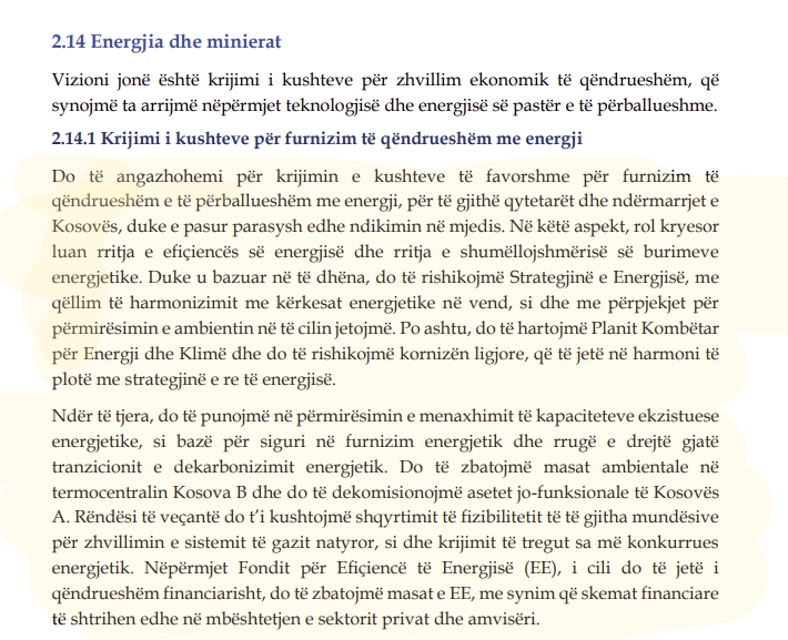 Pjesa për Energjinë në Programin e Qeverisë për vitet 2021-2025 ka vetëm dy paragrafe. Po e përsërisim: pjesa për energjinë në Programin e Qeverisë Kurti për katër vjetë përmban vetëm DY PARAGRAFE.