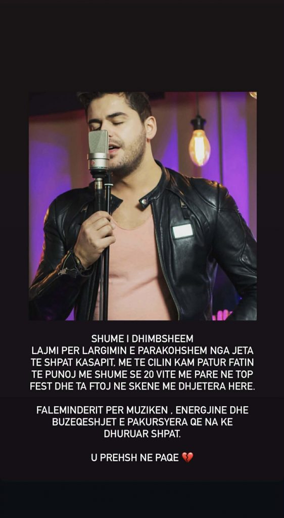 “Shume i dhimbshëm lajmi për largimin e parakohshëm nga jeta të Shpat Kasapit, me të cilin kam patur fatin të punoj më shumë se 20 vite më parë në Top Fest dhe ta ftoj në skenë me dhjetëra here.Faleminderit për muzikën, energjinë dhe buzëqeshjet e pakursyera që na ke dhuruar Shpat”, shkruan Osmani.