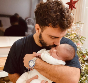 Në fotografi shihet Ledri i cili e mban në krah vajzën teksa uron të gjithë për ditë të reja me shpresë.