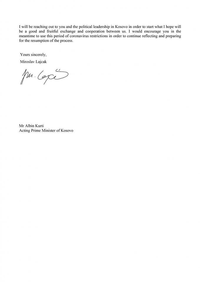 Lajçaku nga pozicioni i një lobuesi kundër pavarësisë së Kosovës, në letër mundohet t’ia bëjë një nder kryeministrit dhe Kosovës, duke aplikuar një pozicion të një mohuesi të lehtë të Kosovës. Për Lajçakun, Kurti është vetëm kryeministër i një Kosove pa Republikë, derisa kryeqytetin e Kosovës e sheh jo si Prishtina, por si Pristina. Natyrshëm për Lajçakun nuk bëhet fjalë për dialog ndërmjet Kosovës dhe Serbisë, por Beograd-Pristina.