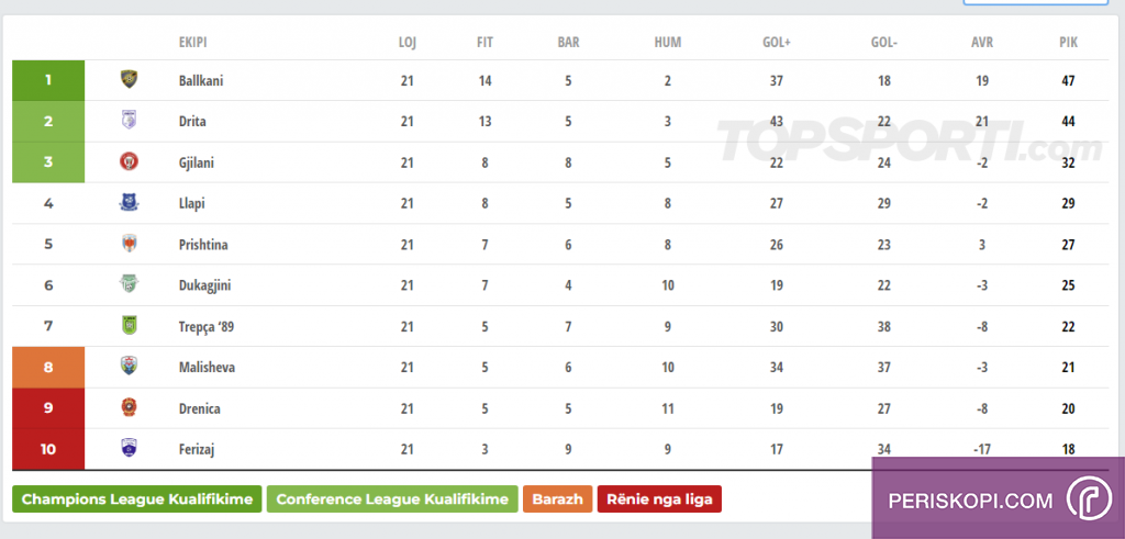 Ballkani aktualisht merr kreun e tabelës me 47 pikë ndjekur nga Drita që ka 44.