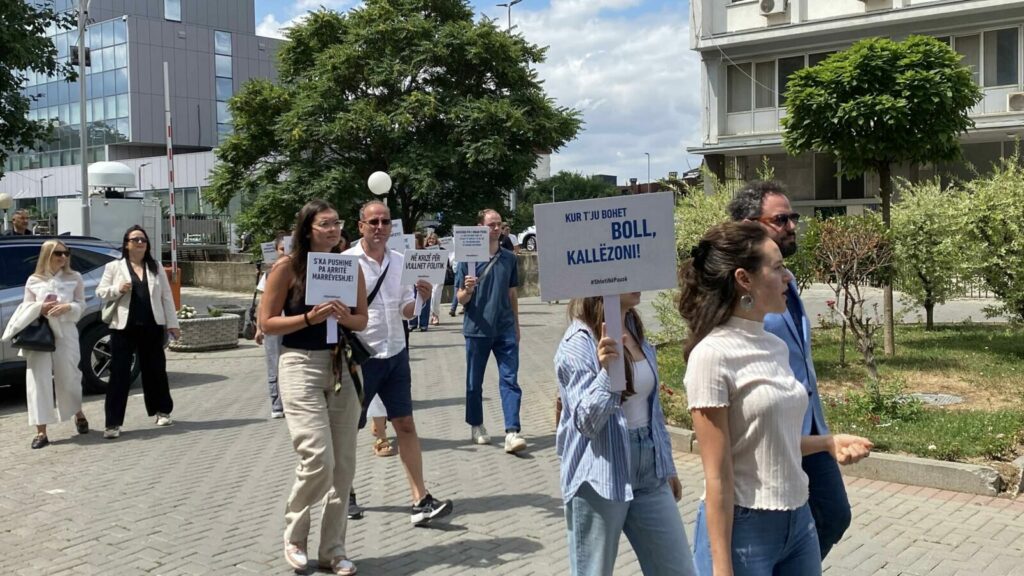 Para fillimit të seancës së 45-të konstituive të Kuvendit të Kosovës, organizatat e shoqërisë civile organizuan sërish një performancë simbolike për të shprehur pakënaqësinë ndaj bllokimit të konstituimit të institucioneve, raporton EO, transmeton Periskopi. “Boll!”, “Mos folni për zgjedhje, kur s’ofroni zgjidhje, “Konkurs për deputetë të rinj”, “Institucionet nuk janë për pazare”, ishin vetëm disa … Continue reading “Loja juaj, pasojat tona”, shoqëria civile rikthehet me protestë para Kuvendit