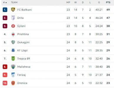 Luhatjet në tabelë pas xhiros së 24’të në Superligën e Kosovës në futboll