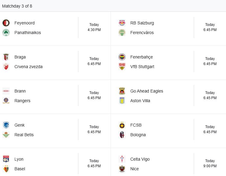 Aty bien në sy disa lojë tejet interesante si: Lyon – Basel dhe Roma Viktoria Plzen.