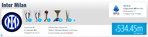 Në anën tjetër, Interi ka vlerë 534 milionë euro.