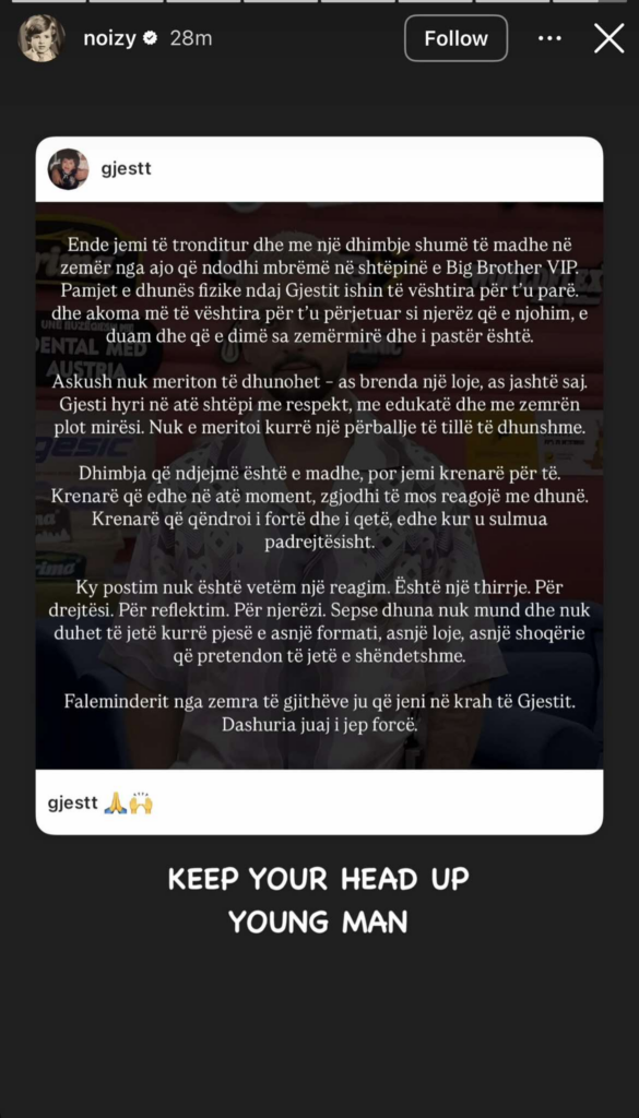 “Mbaje kokën lart, djalosh“, ka shkruar Noizy.