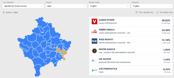 Me 95 % të votave të numëruara, ky po prin në Gjilan