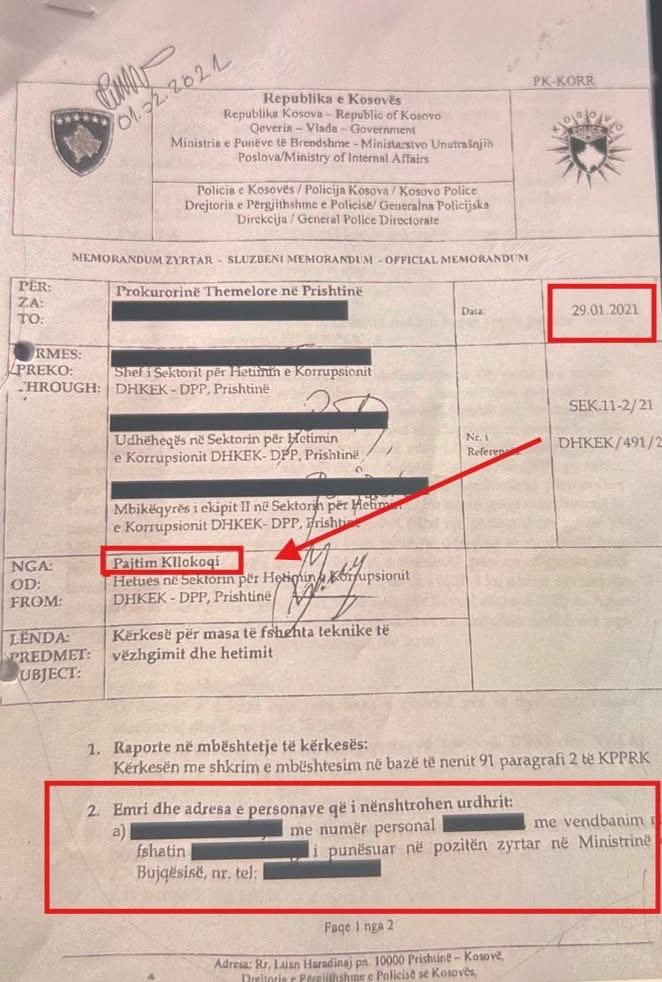 Pajtim Kllokoqi ka qenë hetuesi kryesor i hetimit të korrupsionit në Ministrinë e Bujqësisë nga Policia e Kosovës si Hetues në Sektorin për Hetiin e Korrupsionit. (Shih dokumentin)