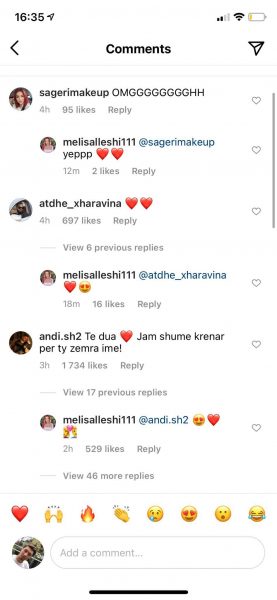 “Jam shume krenar per ty zemra ime”, komentoi Andi në postimin e Melisës.