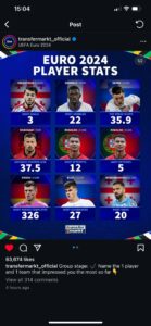 esko i Sllovenisë është lojtari më i shpejtë, pasi ka arritur shpejtësinë 35.9 km/h, ndërsa Toni Kroos i kryeson për numrin total të pasimeve të sakta: 326.