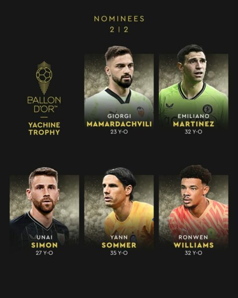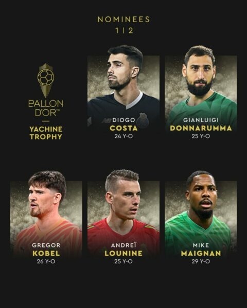 10 emra janë në garë për portierin më të mirë të vitit, Diogo Costa, Gianluigi Donnaruma, Gregor Kobel, Andrei Lounine, Mike Maignan, Giorgi Mamardachvili, Emiliano Martinez, Unai Simon, Yann Sommer dhe Ronwen Williams.
