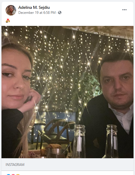 Adelina Sejdiu, ka publikuar një fotografi me ministrin e Drejtësisë, Selim Selimi, të cilën e ka përshkruar me një simbol të një çifti të dashuruar, e që lë të kuptohet se ata janë në lidhje.