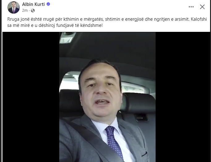 Kryeministri Albin Kurti ka publikuar një video të shkurtër nga vetura, rrugës për në Gjakovë.