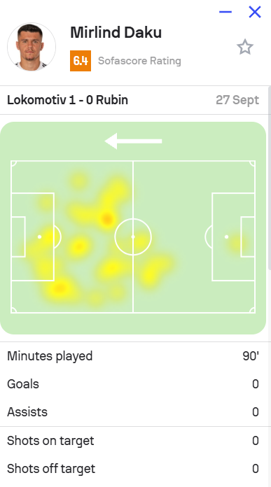Mungesa e vazhdimësisë është kthyer në kryefjalë te Rubin Kazan në Premier League ruse. Goleadori shqiptar Mirlind Daku ishte enekzistent në fushë ndaj Lokomotiv Moscow me shifrat 0:1.