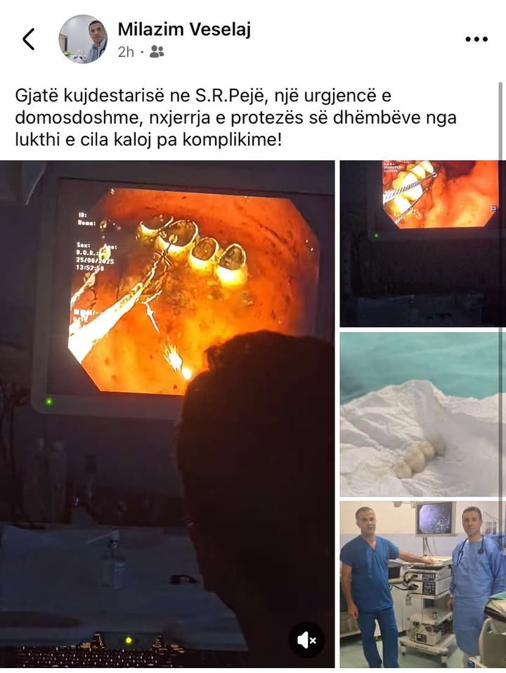 Mjeku nxjerr protezën e dhëmbëve nga lukthi i një pacienti në Pejë