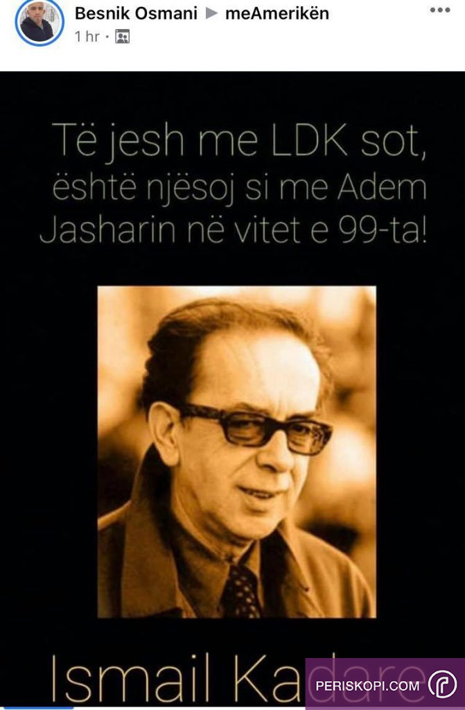 Ok popull. Por militantët e LDK-së, e kanë modifikuar thënien që s’ka dalë kurrë nga goja e as dora e Kadaresë, se ‘të jesh me LDK-në sot është si me Adem Jasharin në vitin 1998’.