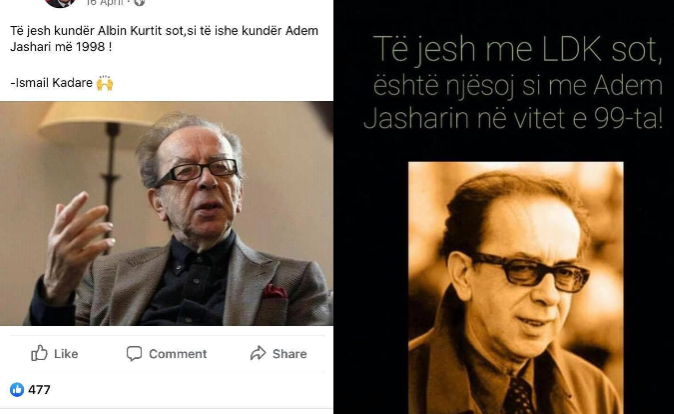 Ok popull. Por militantët e LDK-së, e kanë modifikuar thënien që s’ka dalë kurrë nga goja e as dora e Kadaresë, se ‘të jesh me LDK-në sot është si me Adem Jasharin në vitin 1998’.