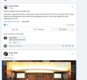 Është deputeti Visar Korenica që është vërejtur se në profilin e tij në Facebook po lejon postime me mesazhe urryese ndaj komunitetit LGBTI, ku ndër tjerash po i bëhet thirrje atij direkt që të mos e votojë.