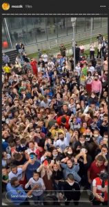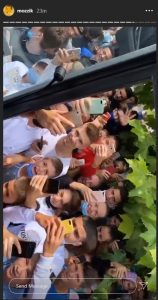 Në disa video të publikuara nga reperi në Instagram, shohim qindra të rinj të jenë mbledhur në njërin nga pikat e caktuara për të pritur Mozzikun.
