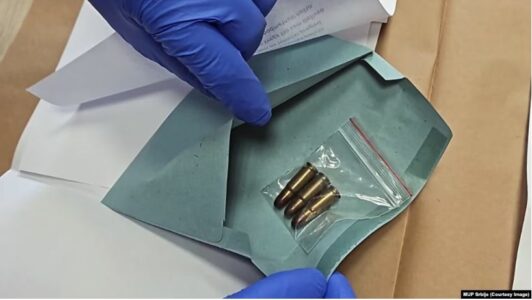 “Gjatë kontrollit të sigurisë me pajisje me rreze X, në zarf u gjetën tre plumba”, thuhet në komunikatën e MUP-it.