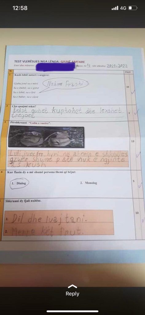 “Naim Frashi”: Nxënësi merr 5 në testin ku s’duhej ta merrte as 2 në Prizren