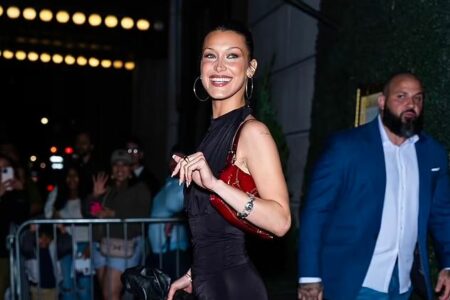 Ndërkohë, motra e saj Gigi mbërriti dorë për dore me të dashurin e saj, Bradley Cooper, 50 vjeç dhe bëri bujë duke mbajtur një unazë në dorën e majtë./Periskopi/ Ansambli i saj elegant shfaqte një dekolte me xhaketë, me shpinë të ulët, një përshtatje me figura dhe një detaj lidhës në bel
