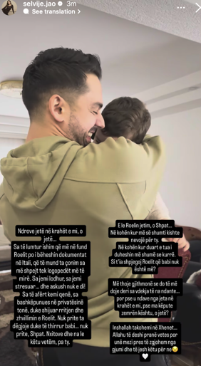 “Ndroi jetë në krahët e mi, o jetë… Sa të lumtur ishim që më në fund Roelit po i bëheshin dokumentat në Itali, që të mund ta gëzonim sa më shpejt tek llogopedja më e mirë. Sa jemi lodhur, sa jemi stresuar… dhe askush nuk e di!”