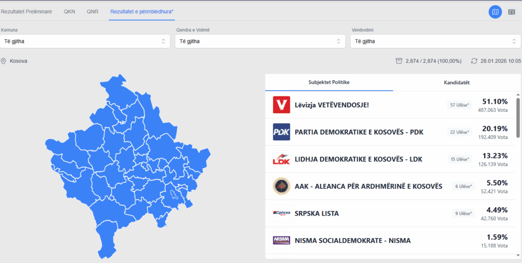 Në platfomën e KQZ-së për rezultate https://resultsparliamentary2025.kqz-ks.org/ në hapësirën QNR > Rinumërim, do të paraqiten rezultatet pas numërimit të çdo vendvotimi.