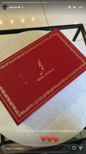 Arbana ka postuar një foto të kutisë dhe ka shkruar: Dhurata perfekte pak para ditëlindjes nga Sara Hoxha ime.