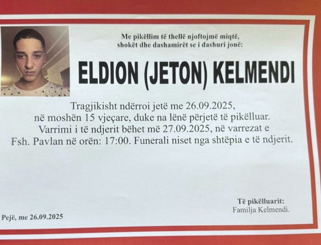 Familjarët kanë njoftuar varrimi i të ndjerit do të më 27.09.2025, në varrezat e fshatit Pavlan në orën: 17:00.