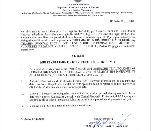 Pas ankimit, ministria e ka pezulluar tenderin dhe ka filluar me shqyrtimin e ankesave. Por, siç ka raportuar Periskopi, prokurimi i ministrisë e ka shkelur ligjin, duke mos u kthyer përgjigje kompanive në afatin kohor në kërkesën e tyre për rishqyrtim. Bile, nuk u ka kthyer akoma deri më tani.