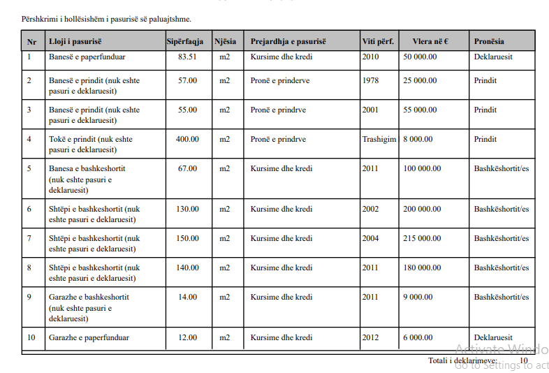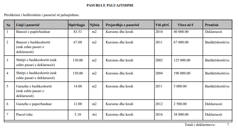 Periskopi më poshtë sjell një përmbledhje të pasurisë së Osmanit, ashtu siç është deklaruar nga ajo në APK.