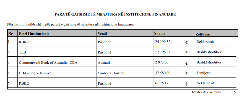 Osmani kishte të holla edhe në dy banka në Kosovë. Në njërën bankë kishte 24 mijë e 347 euro, ndërsa në tjetrën 3 mijë e 200 euro, shuma këto që ndër vite ishin “fryrë”.