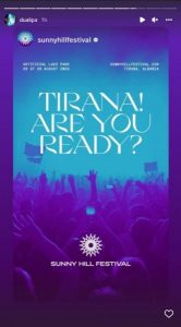Atmosfera e këndshme që u krijua në festivalin “Sunny Hill” që u mbajt për katër ditë në Prishtinë do të vijojë dhe në Tiranë. Festivali i organizuar nga babai i Dua Lipës, Dukagjini do të mbahet në fund të muajit, në datat 26, 27 dhe 28 në kryeqytetin e Shqipërisë.
