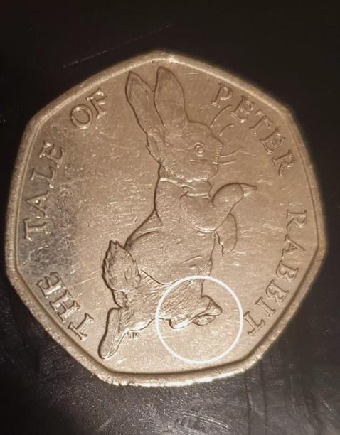 Royal Mint prodhoi pothuajse 20,000,000 Peter Rabbit 50ps në 2017. Ata ishin pjesë e një serie në përkujtim të autores së famshme të fëmijëve Beatrix Potter.