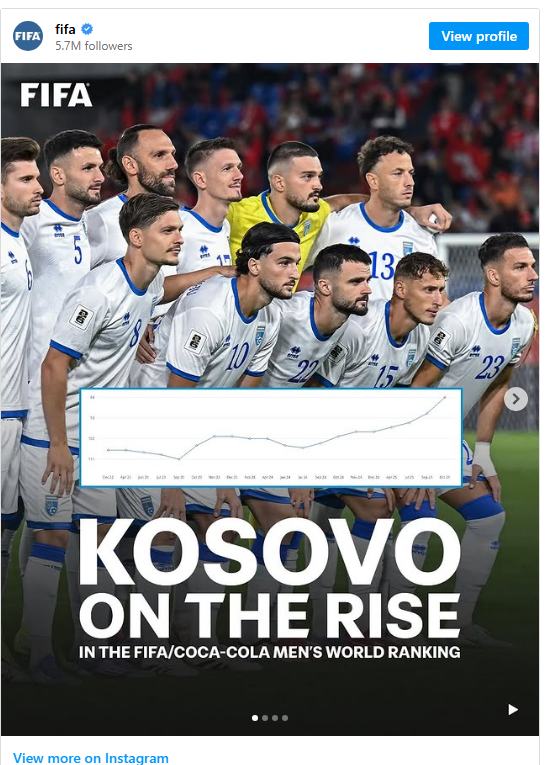 Në postimin e tyre, FIFA ka theksuar avancimin në vendin e 84-të – pozicioni më i mirë i Kosovës që nga themelimi i kombëtares. Kjo ngritje shënohet si një arritje e madhe, jo vetëm statistikore, por simbolike për rritjen e ekipit dhe përkushtimin e futbollistëve që nga dita e parë.