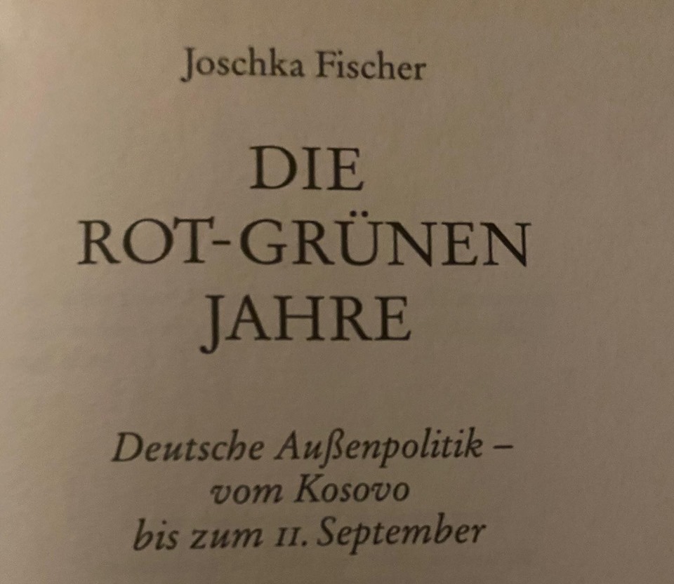Ish-ministri i Punëve të Jashtme të Gjermanisë, Joschka Fischer, në librin e tij “Vitet kuq e gjelbër” një pjesë të mirë të librin ia kushton edhe Kosovës.