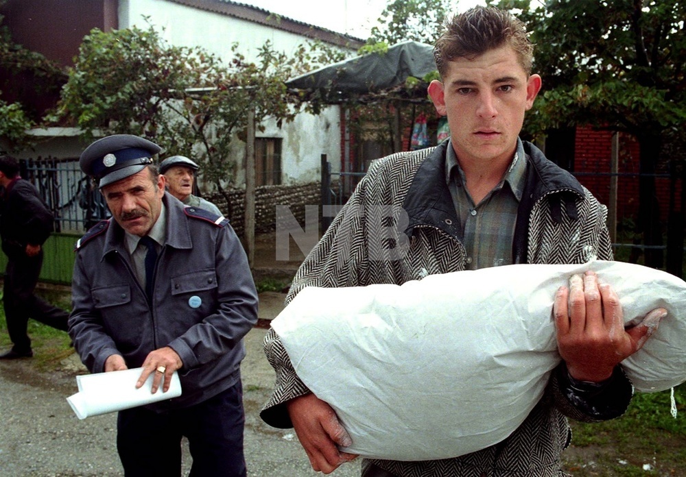 Në fotografinë e mëposhtme shihet Ibraj duke shpërndarë ndihma humanitare në fshatin Osek i Hilës së Gjakovës.