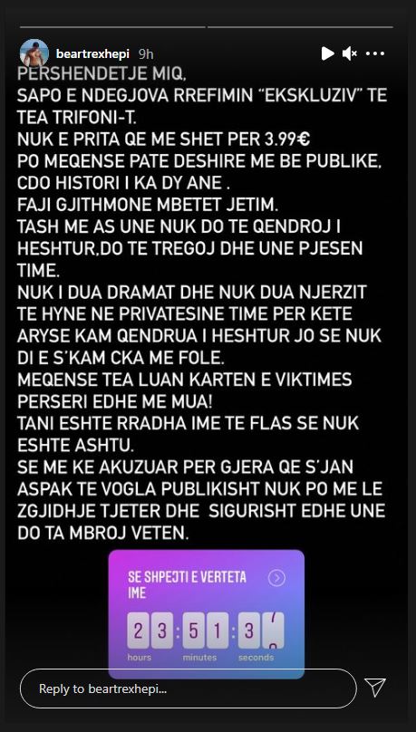 “Nuk e prita që më shet për 3.99 euro”, Bearti reagon pas rrëfimit ‘ekskluziv’ të Teas