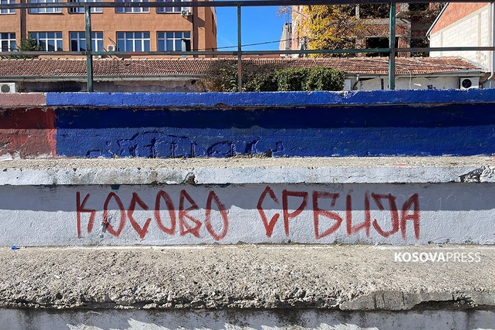 Sipas pamjeve të siguruara nga KosovaPress, në muret e oborrit të shkollës teknike shihen mbishkrime si “Rusët dhe serbët, vëllezër përgjithmonë”, “nuk ka dorëzim” dhe “Kosova është Serbi”.