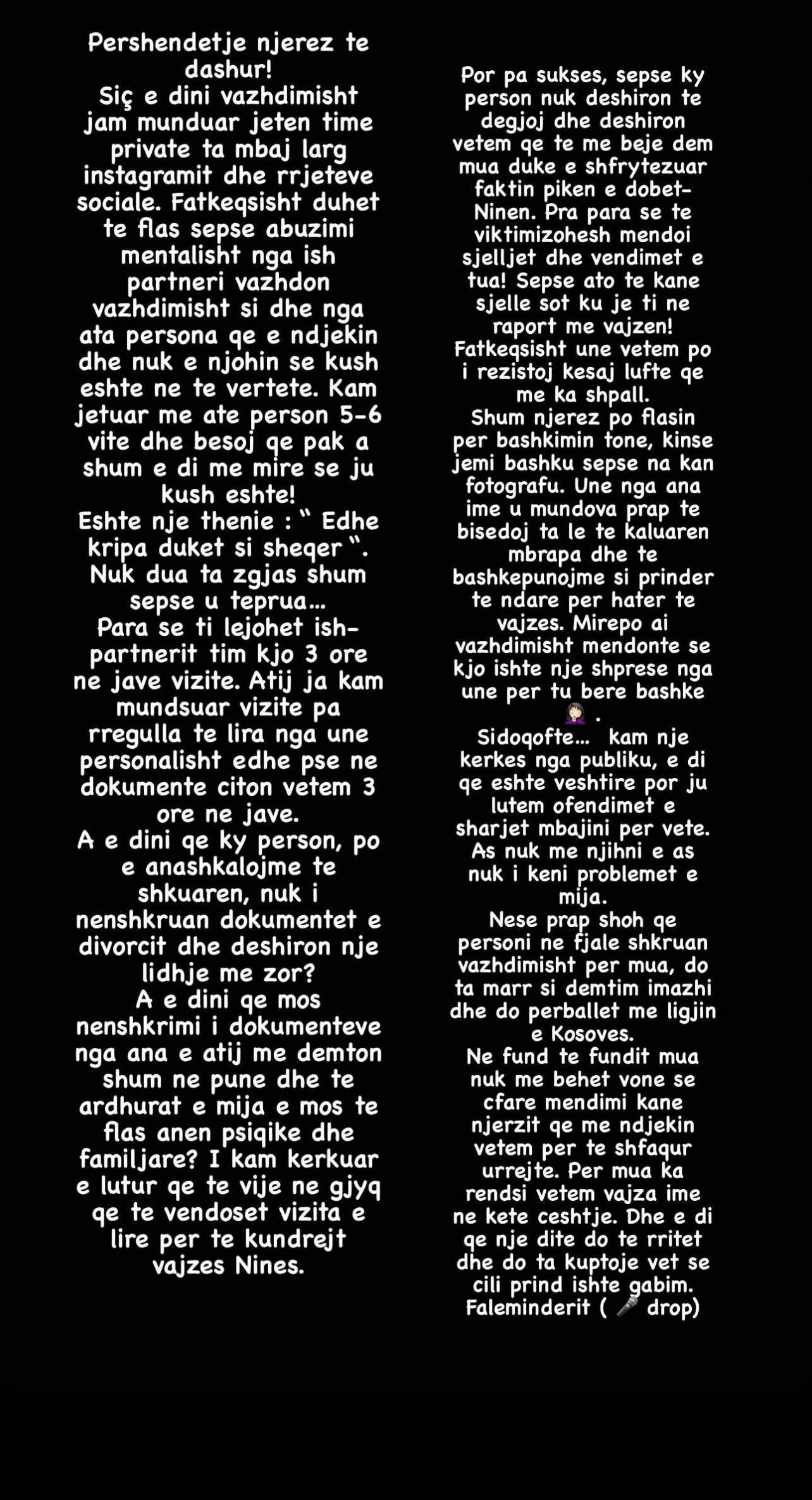 “Nuk nënshkruan divorcin, dëshiron lidhje me zor” –Arbenita me shkrim të gjatë tregon raportin me Feron