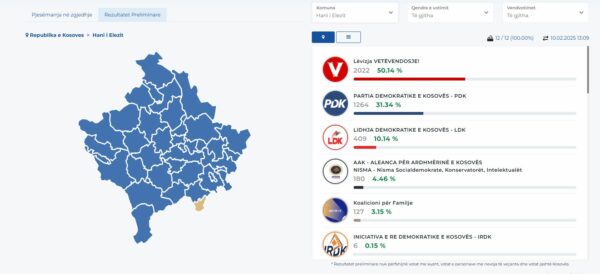 Në Komunën e Hani i Elezit janë numëruar të gjitha votat, raporton GazetaBlic.Në këtë komunë,sipas rezultateve të KQZ-së Lëvizja Vetëvendosje ka fituar 2022 vota ose 50.14 për qind.