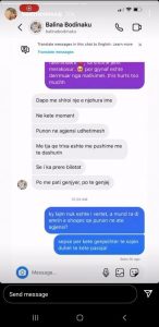 Më pas ajo ka postuar bisedën në Instagram të Balinës me një ndjekëse të saj, ku Balina i thotë se Beatrix ka ikur jashtë me të dashurin.