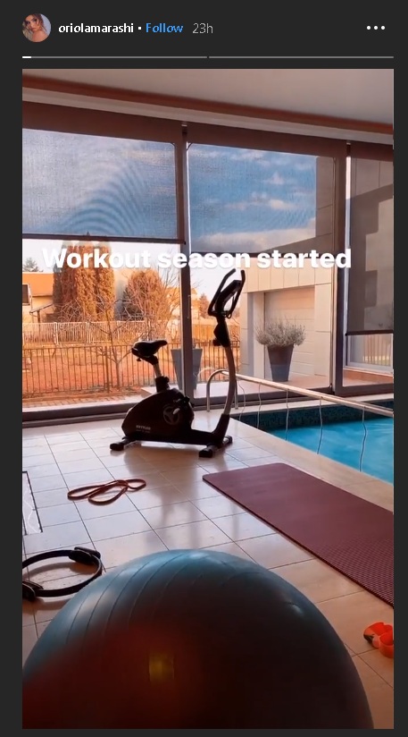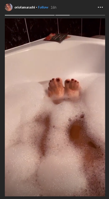 Së fundmi, Oriola ka publikuar në Instastory dy foto ku duket se ka nisur stërvitjen në palestër dhe një foto nga vaska nga e cila tregon këmbët.