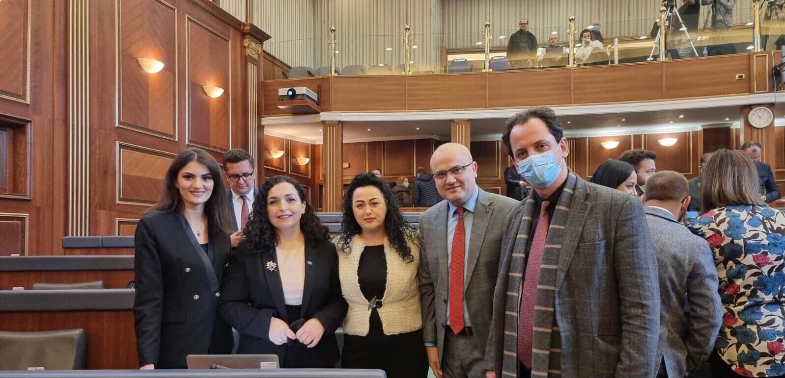 Deputetja e kësaj partie, Marigona Geci ka publikuar fotografi ndërkaq nga pamjet e Kuvendit, shihet edhe përshëndetja e znj.Osmani me deputetin e LDK-së, Besian Mustafa.